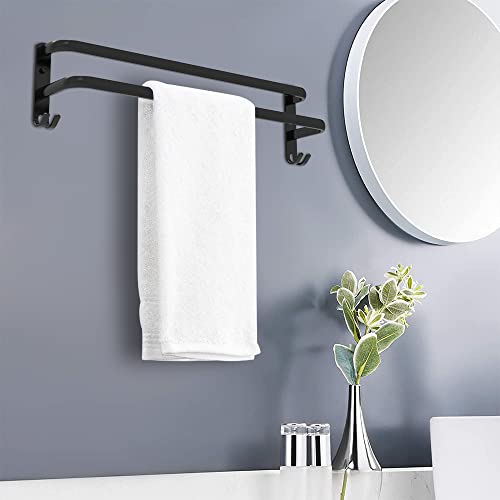 HONPHIER - Towel Rail Bathroom 2 Tier Towel Rail Bathroom Aluminium Wall Towel Rail Towel Holder Wall Mounted for Bathroom Kitchen Toilet (50 cm, Black)