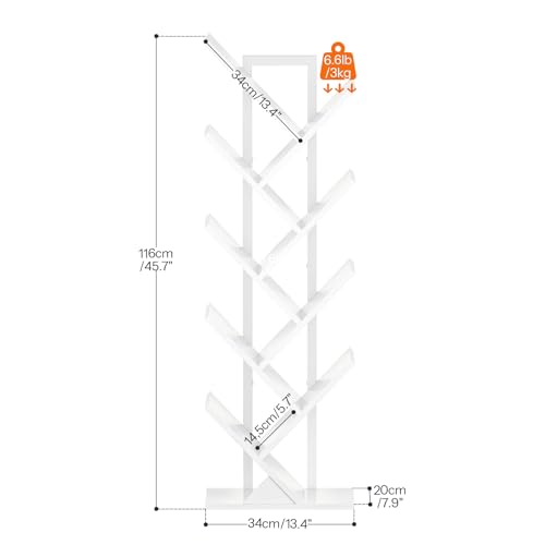 - Tree-Shaped Design: Sized 34 x 20 x 116 cm (L x W x H), the freestanding bookshelf is inspired by naturally growing tree branches with smooth lines and aesthetic appeal. It makes the most of vertical space and is perfect for decorating your home in a corner