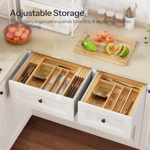 - Quality Bamboo Material: The kitchen drawer organizer is made of natural bamboo, which is sturdy and withstand wear and tear. The smooth wood grain surface is easy to clean and adds a touch of fresh elegance to your space, blending seamlessly with any decor