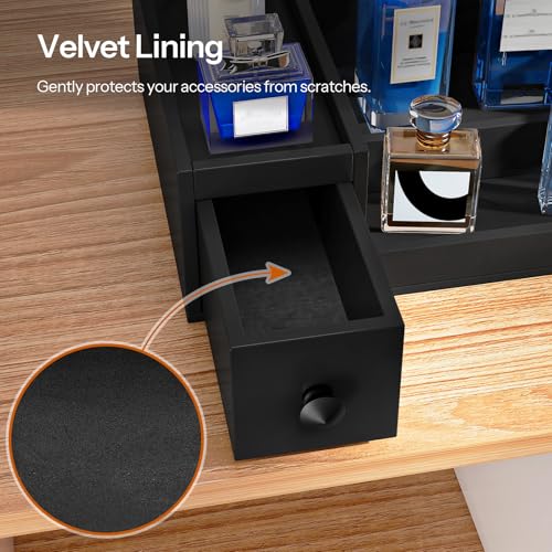 HOOBRO - HOOBRO Cologne Stand for Men, 3 Tier Black Bamboo Perfume Organizer with Velvet-Lined Drawer and Hidden Compartment, for Perfumes, Watches and Accessories, A Gift for Men, Black BK29CJ01