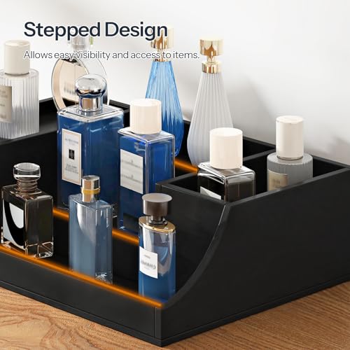 - Countertop Organization: This perfume organizer is 15"L x 9.8"W x 3.1"H, ideal for organizing perfumes and accessories on your vanity or bathroom countertop.Its 3-tier step design stores multiple bottles of perfume, providing a clear view and easy access