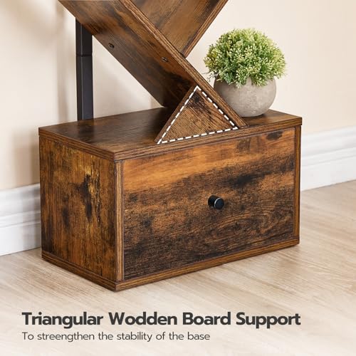 HOOBRO - HOOBRO EBF18SJ01 Bookcase with Drawer, Standing Shelf with 9 Levels, Tree Shaped Bookcase, Wooden DVD Shelf, Freestanding Book Tower for Living Room, Bedroom, Home Office, Vintage Brown