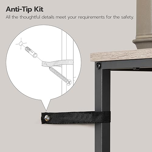 - Rugged Construction: Made of the quality particleboard and a black metal frame, this over the toilet storage shelf is reliable and can bear 33 lb per shelf. Anti-tip kit and adjustable feet provide additional protection for the shelf on different surfaces