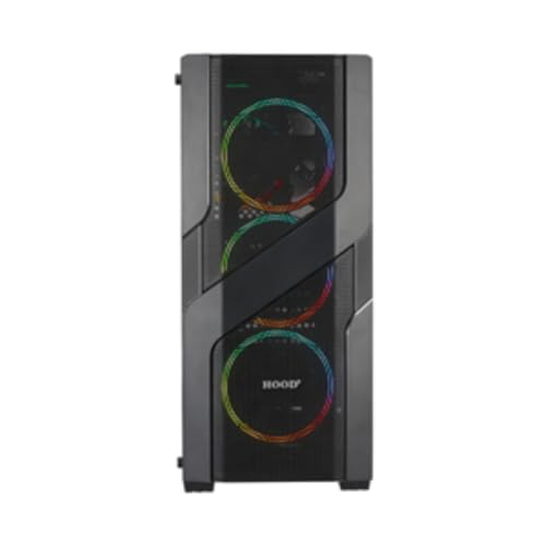 HOOD. - HOOD C 404 H Computer Gaming Case – Mid Tower ATX Case Without Power Supply, Tempered Glass Side Panel, Enhanced Cooling Support - Black
