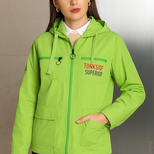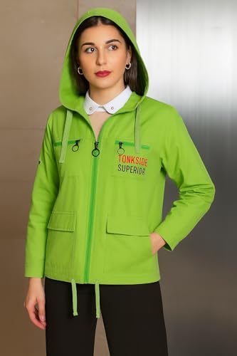 Generic - Hooded Utility Jacket with Multiple Pockets, Lime Green, Superior Logo Design size L
