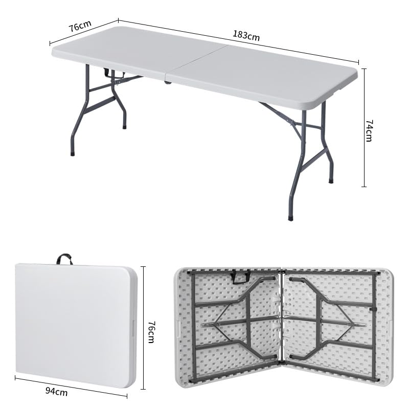 - تخزين خالٍ من المتاعب - لن تواجه صعوبة في تخزين هذه الطاولة الخارجية. يبلغ مقاس كل وحدة 94 × 74 × 7 سم فقط عند طيها، مما يجعل من السهل تخزينها. تتميز الطاولة بطول 6 أقدام أيضًا بتصميم مسطح مما يجعل من السهل نقلها.