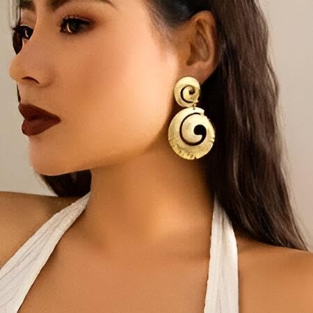 Generic - Hoop Earrings - Gold Spiral Hoop Design with a Vintage Touch, Ideal for Chunky Circle Drop Styles and Geometric Large Circle Studs for Everyday Wear