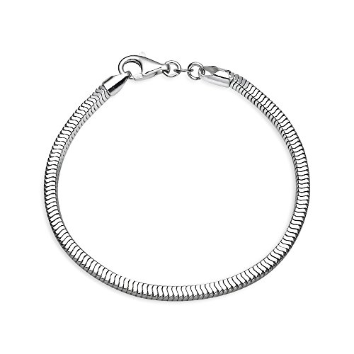 Hoops & Loops - سوار سلسلة ثعبان مربع مصقول من الفضة الاسترليني ب سم ك 3 ملم و 7 انش للنساء للرجال للبالغين الجنسين بنات الأولاد