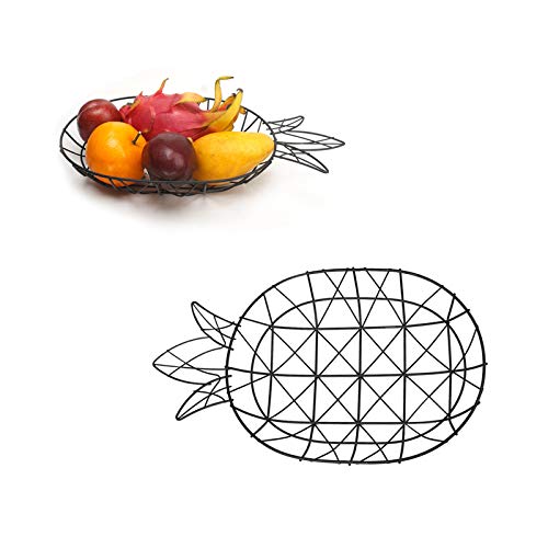 Hooshion - سلة فاكهة من سلك معدني على شكل اناناس لسطح الترابيزة هوشيون صينية الفاكهة بولة حامل اسود عدد القطع: 1