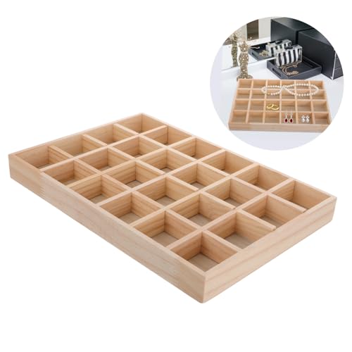 HORIALENCE - منظم مجوهرات خشبي مكون من 24 شبكة لعرض الحلقان والسلاسل متعدد الوظائف من هوريالينس