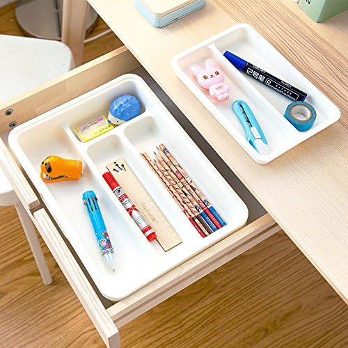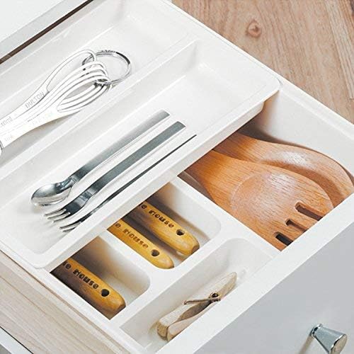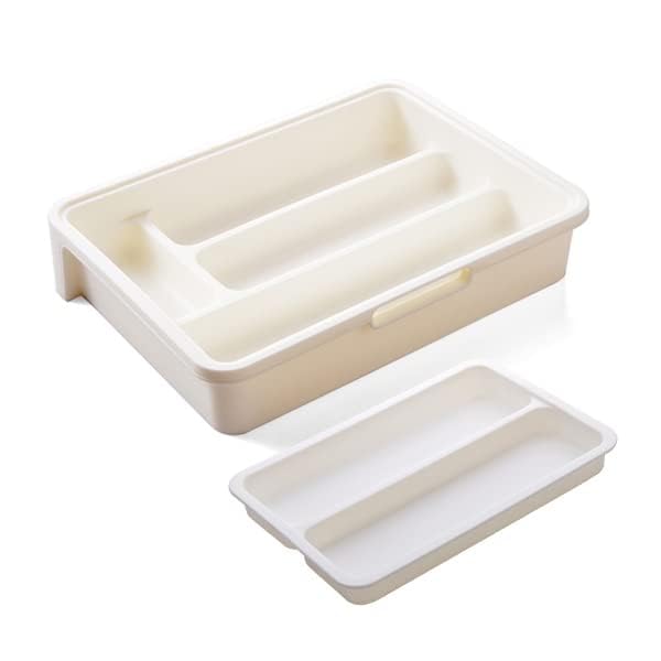 HornTide - صينية أدوات تناول الطعام 3 في 1 قابلة للتوسيع، منظم درج المطبخ البلاستيكي لتخزين أدوات الطعام الفضية وغيرها من هورنتايد، لون أبيض