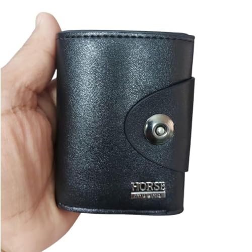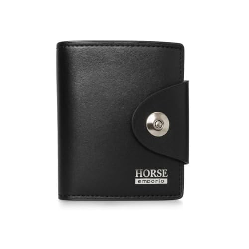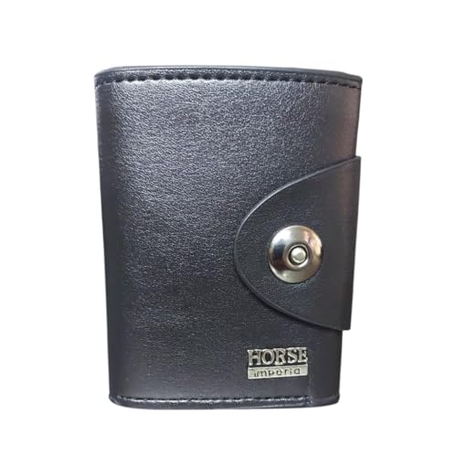 Generic - Horse Imperial Leather Wallet with Snap Buttons and Card Case (Black)