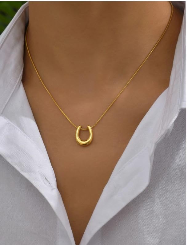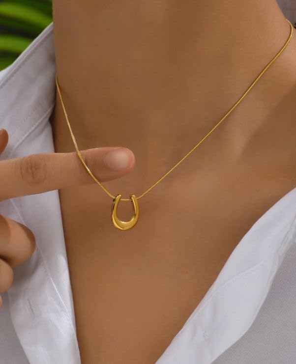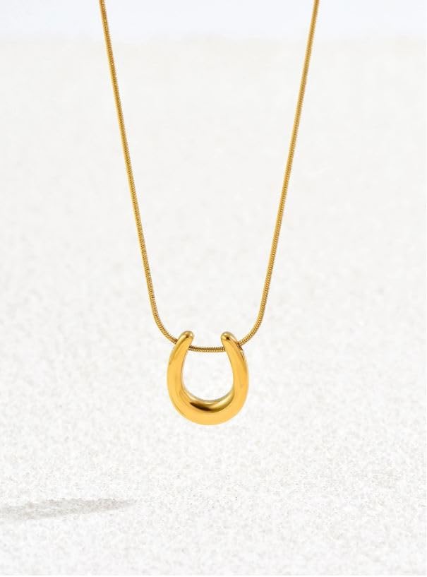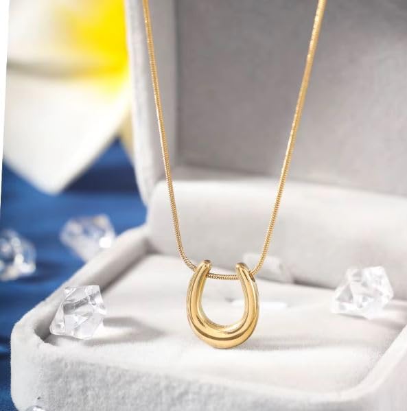 Generic - قلادة بدلاية على شكل حدوة حصان مع سلسلة ثعبان، دلاية داينتي لاكي من الستانلس ستيل المطلي بالذهب 316l