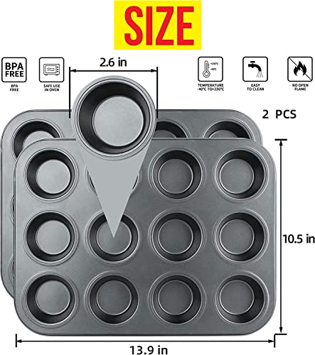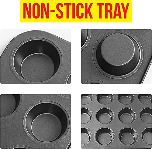- صينية مافن غير لاصقة - خالية من البيسفينول ايه وآمنة للاستخدام في غسالة الصحون مع قالب خبز مقاوم للبقع، قالب خبز للمافن أو الكب كيك، أواني الخبز - (اسود)