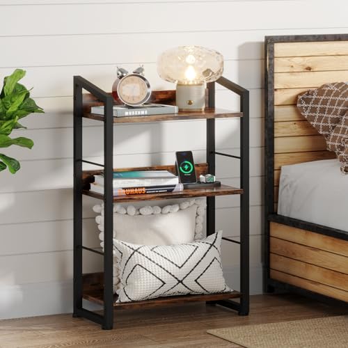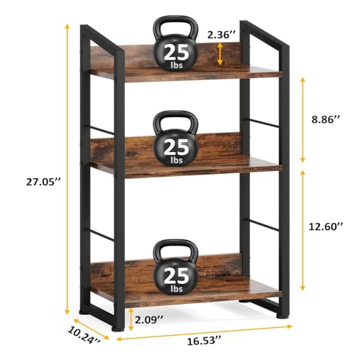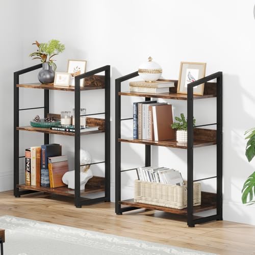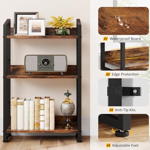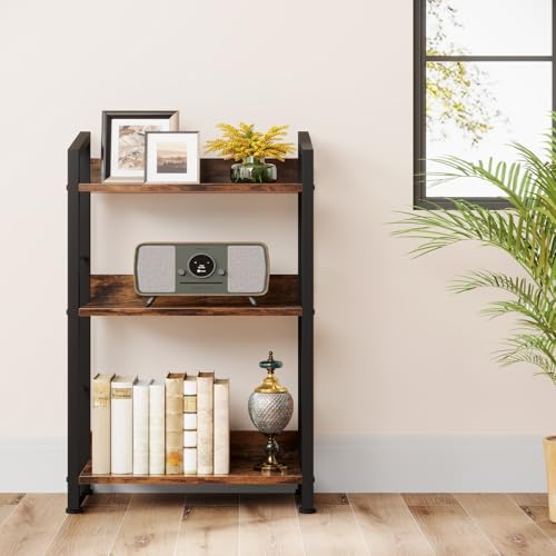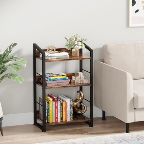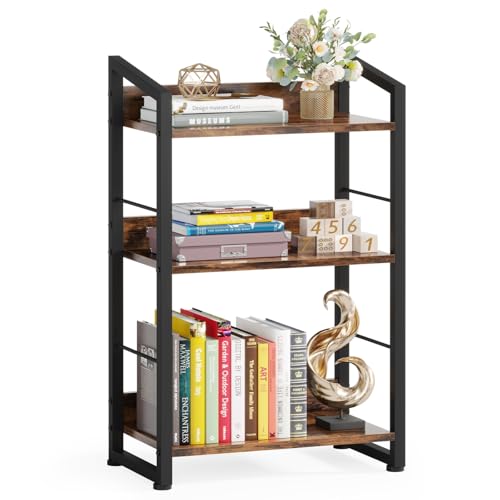 Hosfais - Hosfais Small Modern Bookshelf: 3 Tier Industrial Bookshelves for Bedroom, Short Bookcase Book Shelf for Small Spaces (Rustic Brown)