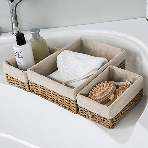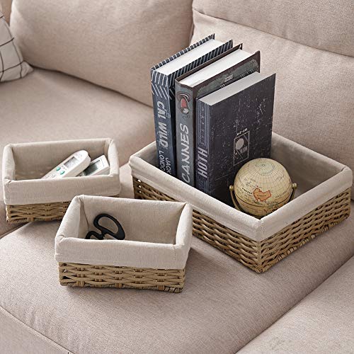 HOSROOME - Hosroome Handmade Wicker Storage Basket Set - Shelf and Decorative Home Storage Bins, Organizing and Nesting Baskets (Set of 3, Beige)