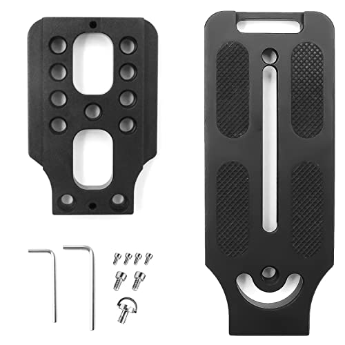 - High-quality materials: made of aviation aluminium with high-precision CNC technology, the holder is characterised by low weight, high strength and good durability, which is absolutely worth the money and can work with a super long service life. Each side of the 2-piece plates is equipped with a non-slip screw that can work with the U-shaped grooves of the clamp and protect the camera from falls