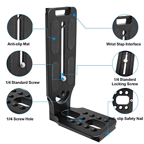 Hossom - Hossom Quick Release L-Bracket, L-Bracket Vertical with Quick Release Plate, 1/4 Inch Screw DSLR Camera L Mount Compatible with Manfrotto DJI Zhiyun Canon Nikon Sony Mirrorless Camera