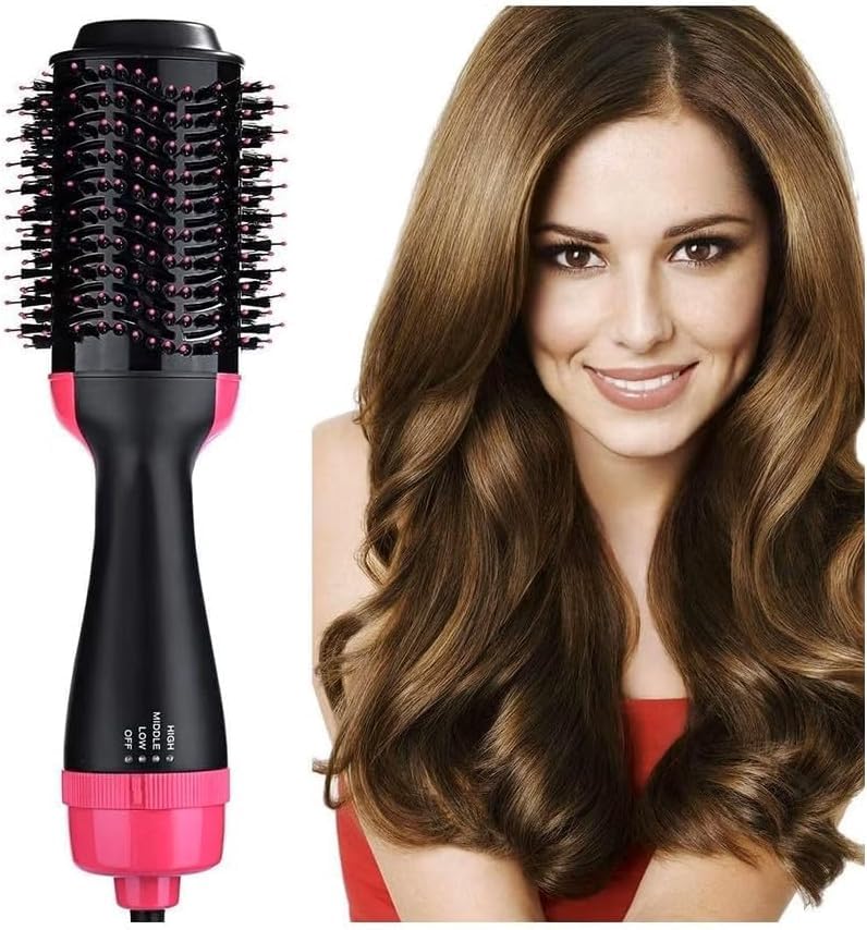 Generic - Hot Air Brush 1200W 2-in-1 Hair Dryer & Styler - 3 Speeds, Fixed Non-Detachable Head, Overheating Protection, Professional Wire Hanging Hook, 220-240V 50/60Hz