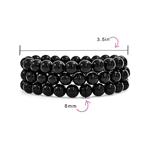generic - Hot And Bold Matching Natural Multi Layer Tiple Protection Gem Stone Beads Stacked Combo Bracelets., One Size, Gemstone, Black Tourmaline