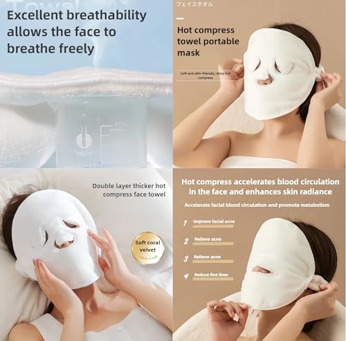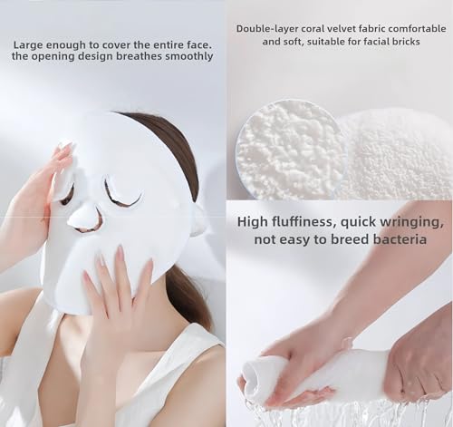 Generic - قناع وجه مضغوط ساخن وبارد، فوطة وجه قطنية مزدوجة الطبقات قابلة لاعادة الاستخدام للعناية بالبشرة وتنظيف المسام ومقاومة التجاعيد وتعزيز امتصاص مستحضرات التجميل من قطيفة المرجان ناعمة للجنسين