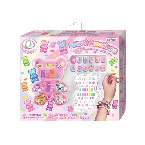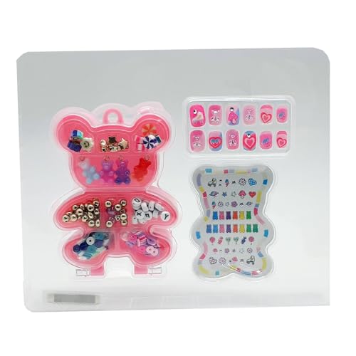 - COMPLETE ACCESSORY KIT: Gummy bear-themed fashion set includes beads for bracelet making, 12 press-on nails, nail stickers, and decorative accessories all stored in a cute bear-shaped acrylic organiser.