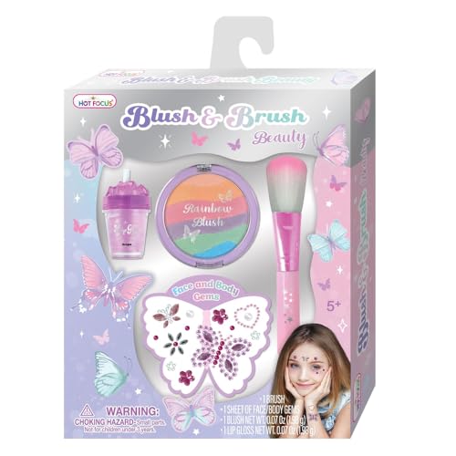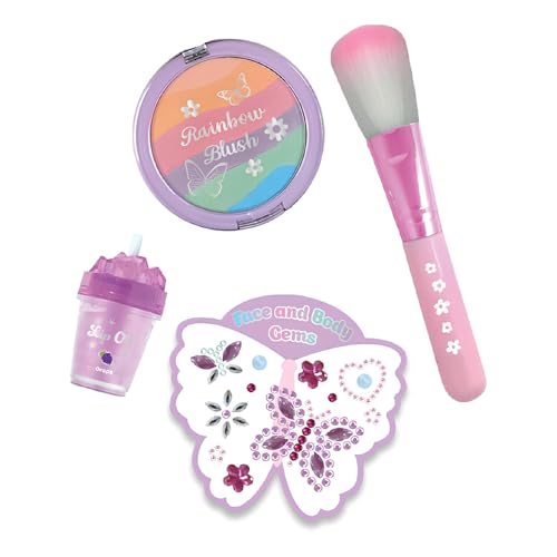 Generic - Hot Focus Tie Dye Butterfly Blush Brush Beauty Kit, Multicolor, Cosmetic Brush with Body Gems and Lip Gloss, 4 Pieces, Ages 3+