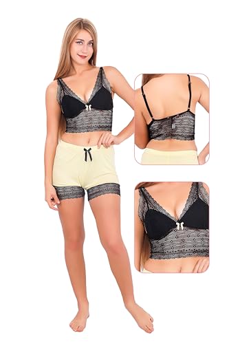 Dadoush - طقم لانجري هوت شورت مكوّن من 2 قطع هوت شورت و تيشرت توب بدون أكمام, بيجامة حريمي صيفي بأطراف دانتيل مثير - طقم بيجامة صيفية منزلية قطن بدون أكمام للنساء بتصميم فريد وبسيط