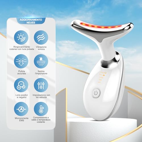 - Automatic heating 45±5°C: when you turn on the electric facial massager, it automatically heats up to about 45°C in a few seconds, which allows the skin pores to open for you and be better absorbed by the skin when you use it with serums or firming creams, etc., resulting in a more radiant and firmer skin