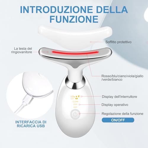 - High quality 7-colour LED light: This multifunctional facial wrinkle device is equipped with seven LED lights of different colors, each with a different wavelength and function, which provide complete care for your skin and help improve a wide variety of skin problems and restore your skin a youthful glow