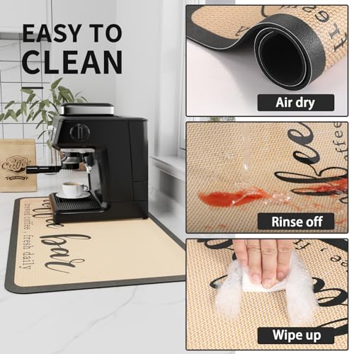 HotLive - بساط ماكينة القهوة مطاط من هوت لايف، سطح ماص للبقع عن سطح الطاولة، اكسسوارات القهوة تناسب ماكينة تحضير القهوة وماكينة تحضير الاسبريسو، مفرش تجفيف الأطباق لطاولة المطبخ، 40.64× 60.96 سم، بيج