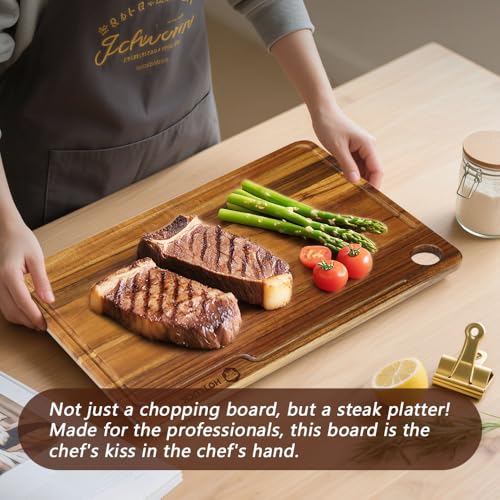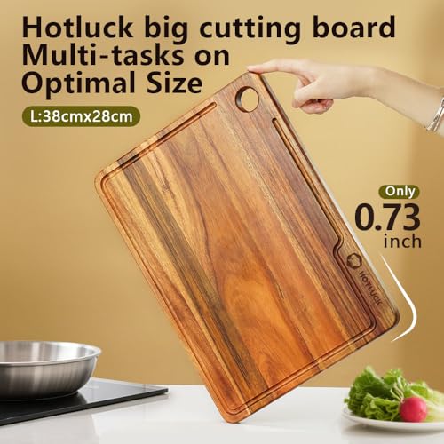 Hotluck - لوح تقطيع للمطبخ من هوتلاك، لوح تقطيع خشبي مطور، لوح تقطيع لحوم كبير مع اخدود عصير، الواح تقطيع من خشب الورد، تشاركوتيري فاخر، لوح جبن لتقديم الطعام (15 قدم × 11 انش)