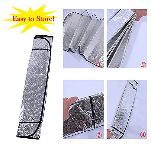 - Perfectly fits most car windshields,size 23.6"x55", you can quickly and easily fold away into the pouch provided for convenient placement inside your vehicle.