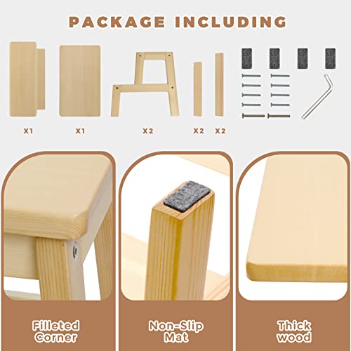 - 【NON-SLIP AND RIUND CORNERS DESIGN】Our wood step stool is equipped with anti-slip mats for each foot, which is used for preventing the elderly,young children and pregnant women from slipping. All corners on the stool are rounded to prevent your child from bumping and hurting.
