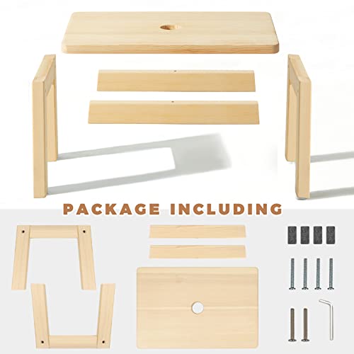 - 【SAFE AND NON-SLIP】Curved treatments are carried out around the wooden step stool, which is very smooth.You don't have to worry about your kids getting hurt by bumping into it.Each wood stool has a separate foot pad to prevent slipping and protect your floor.