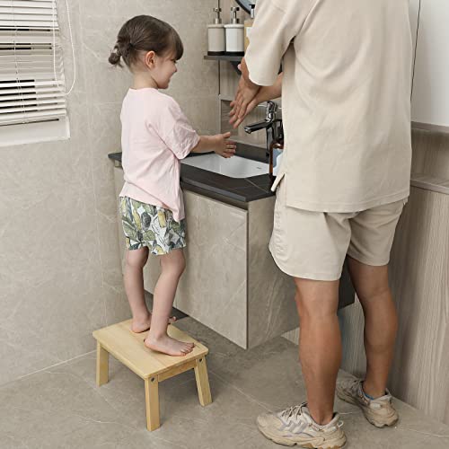 - 【MULTI-PURPOSE】Kids step stool allows children to brush their teeth in front of the sink, get the books on the shelf ,and help at the kitchen counter. It can also be used as a seat for children to read and wear shoes. This wooden stool can exercise children's ability to take care of themselves independently.