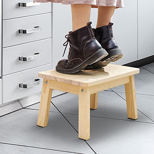 - 【SOLID WOODEN STEP STOOL】This step stools are made of solid birch.Wood step stool is very stable, it is strong enough to hold 220 pounds weight. Adults can also stand on it easily.It provides height assistance for children and adults, and can raise you 9 inches to reach where you want to reach. SIZE:15 * 10.1 * 8.13 in.