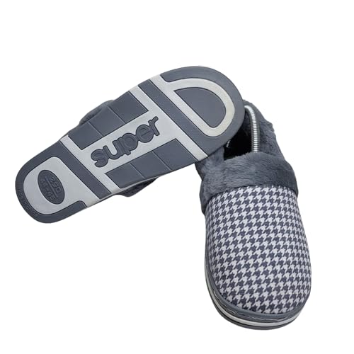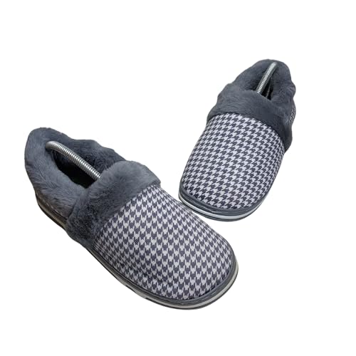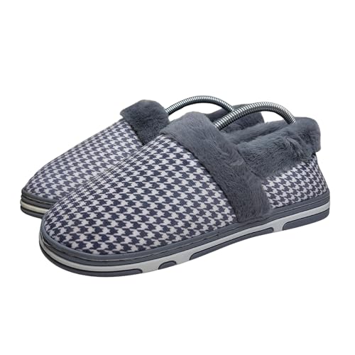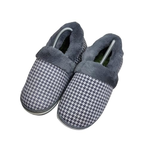 Generic - شبشب شتوي بنمط هاوندستوث، حذاء منزلي داخلي مع بطانة من الفرو، لون رمادي، مقاس 42/43 - لكلوك مقفول فرو
