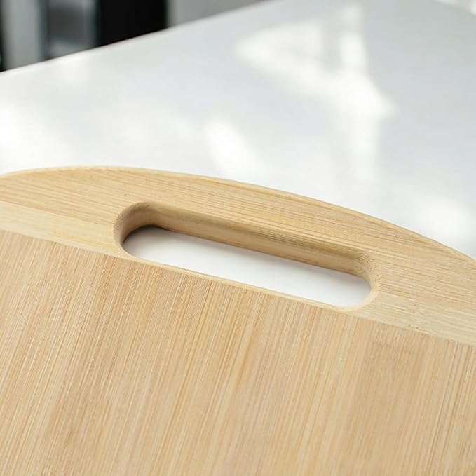 - تصميم بثقب تعليق مريح: مصمم بفتحة متعددة الأغراض عند الحافة، لوح التقطيع الخشبي المصنوع من البامبو سهل التعليق، مما يوفر مساحة مطبخ منظمة. تعمل هذه الفتحة أيضًا كقبضة أصابع للتعامل بشكل أفضل. تصميمه الرفيع وخفيف الوزن يجعل من السهل تخزينه، سواء اخترت تعليقه على خطاف أو وضعها في الدولاب.