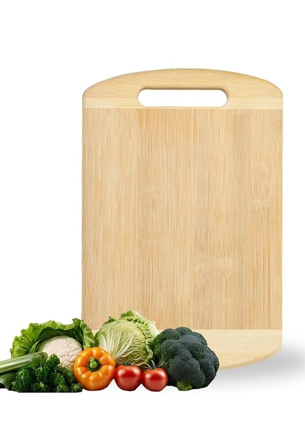 HOUSE OF BHARAT - لوح تقطيع خشبي من البامبو للمطبخ بسطح أملس مع مقبض من هاوس اوف بهارات، لتقطيع وفرم الخضروات والفواكه في المطبخ، خال من البيسفينول ايه، لوح تقطيع مقاس 26 × 36 سم