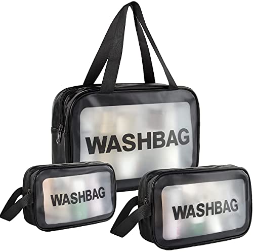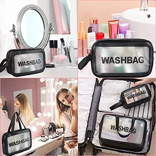House of Quirk - House of Quirk Clear Toiletry Bag, Wash Make Up Bag PVC Waterproof Zippered Cosmetic Bag, Portable Carry Pouch for Women Men (Set of 3 Bag Black)