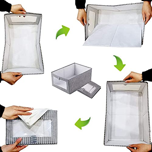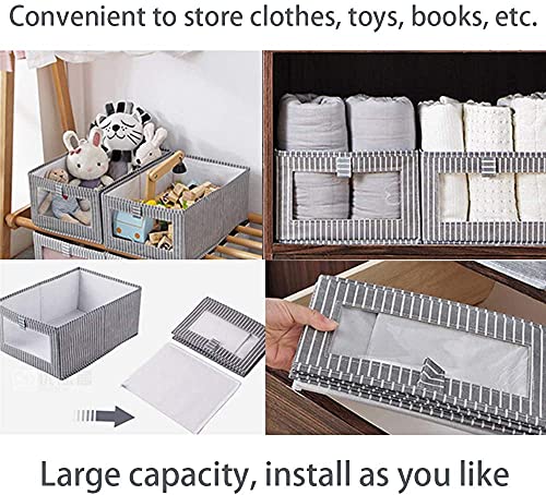 House of Quirk - House of Quirk Rectangle Foldable Storage Boxes, Fabric Closet Organizer Holder Box, Set of 1 Toy Storage Bins with Clear Window Handles, Great for Hallway, Entryway, Closets - Dark Grey