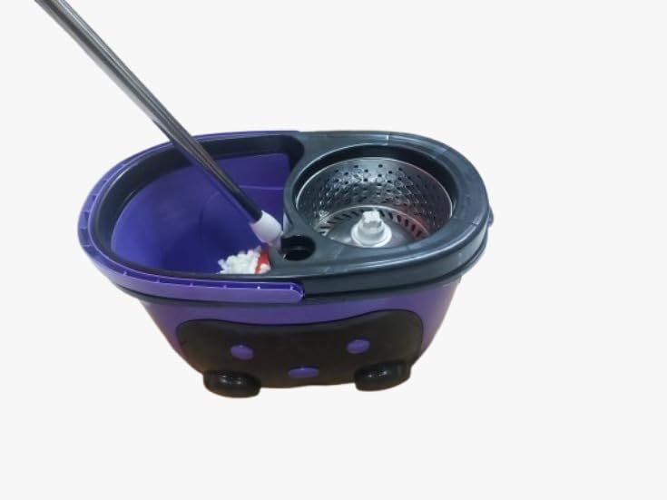Generic - أدوات تنظيف منزلية (جردل دوار دلو مصفاة ستانلس ستيل عجل لسهولة الحركة لون بنفسجي * اسود)