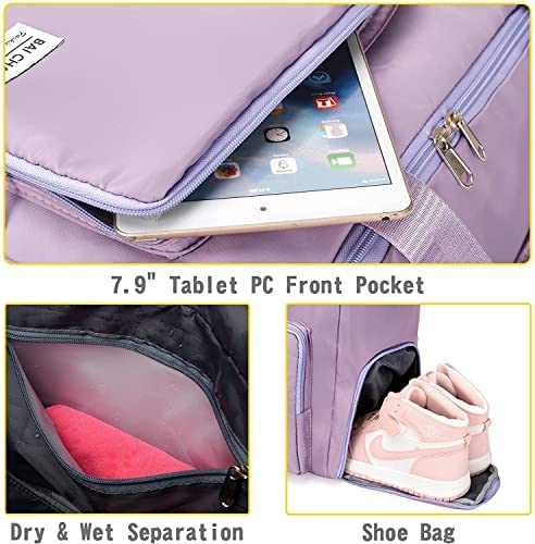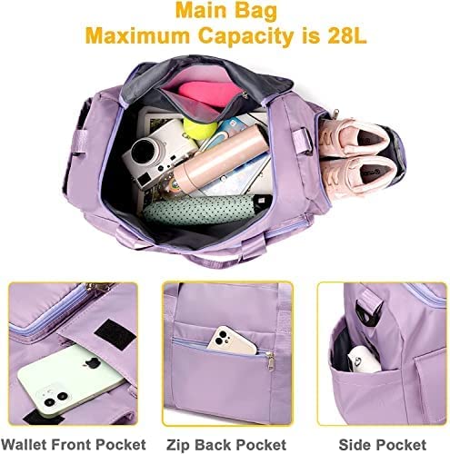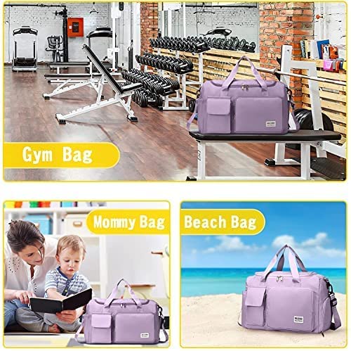 Household Culture - Sports Gym Bag with Wet Pocket & Shoe Compartment Waterproof Weekend Travel Bag Overnight Bag for Women, Large Duffle Bag (Violet)
