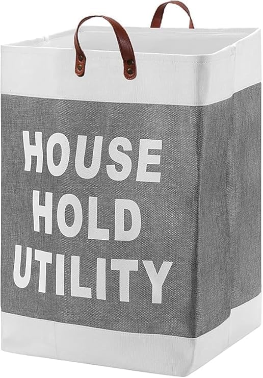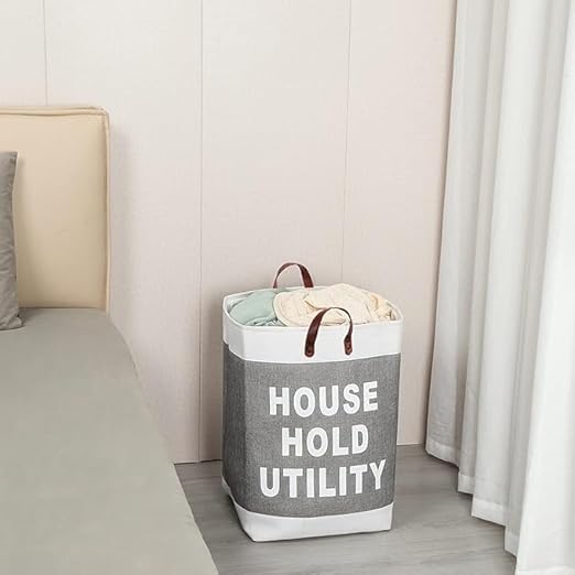 Generic - شنطة تخزين قماش منزلية بمقابض جلدية، لون رمادي وبيج
