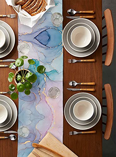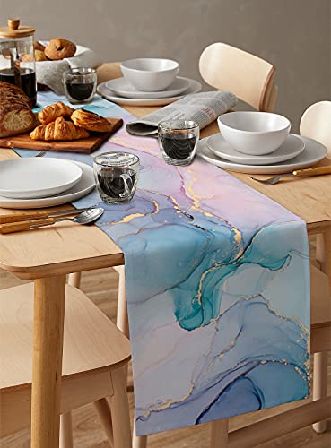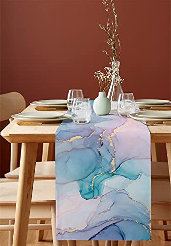 Housein - Table Runner, Pink and Green Marble Texture for Dining Room, Kitchen, Living Room, Holiday and Party Table Decor 13x90 13*90in