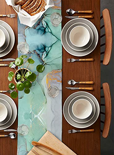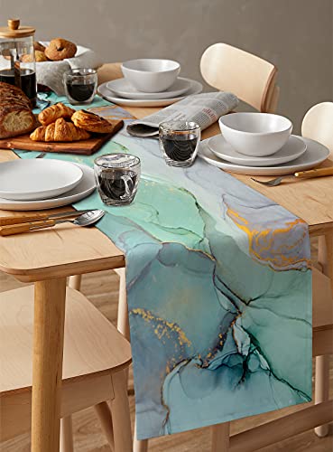 Housein - Table Runner, Turqouise Marble Printed for Dining Room, Kitchen, Living Room, Holiday and Party Table Decor 18x72in, Multicolor