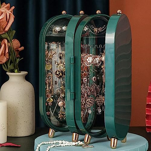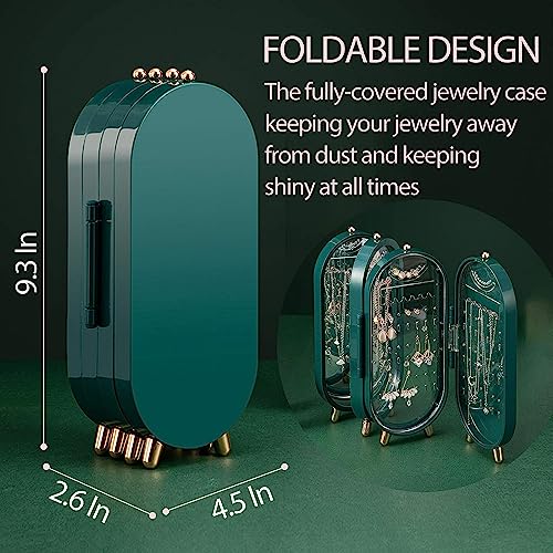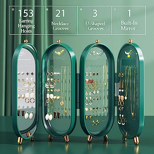 HOUSLET - حامل اقراط قابل للطي مع مراة من هاوسليت صندوق منظم مجوهرات للاقراط والقلائد للنساء والفتيات صغير هدايا للبنات اخضر