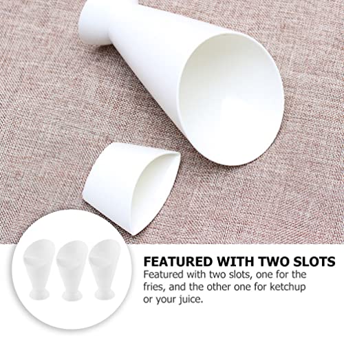 Housoutil - Housoutil White Dessert Plates Plastic French Fries Cup 6Pcs French Fry Cone Dipping Cups French Fries Holder with Ketchup Compartment Standing 2 in 1 Snack Cone with Dipping Cup White Serving Tray