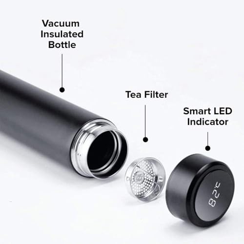- Distinguishing feature:TEMPERATURE DISPLAY: This new style bottle have a LED Intelligent Temperature Display on the top of the thermos which will last up to 80,000 touches without a battery change. That's 5+ years of usage! The warmth of every moment you can see just by gently touching the top of the thermos cover. Press the top of the thermos softly,Sensitive capacity touch-cover can show the temperature of water inside the thermos immediately that can avoid the embarrassment of burning your.